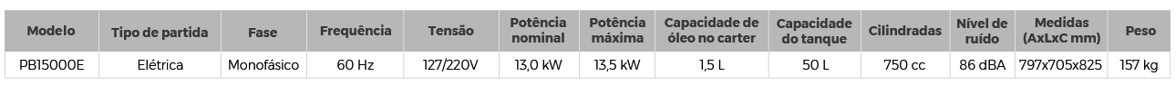 Baixe a ficha técnica do Gerador PB15000E e saiba mais!